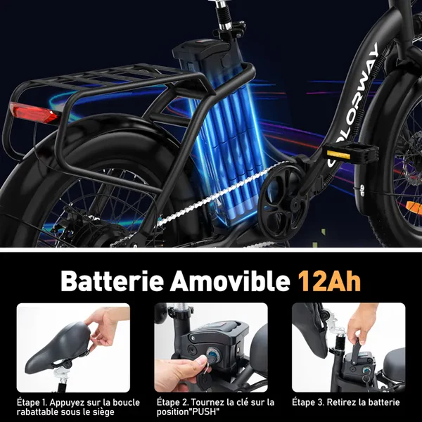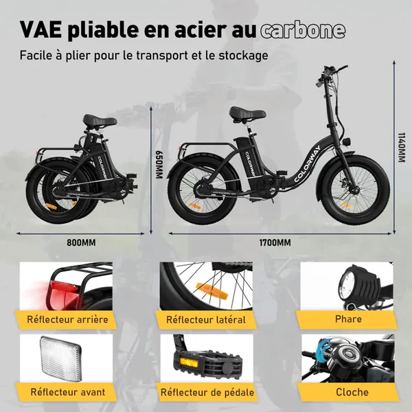 COLORWAY BK6G – Vélo électrique pliable 20″ – 36V 12Ah 250W – Noir