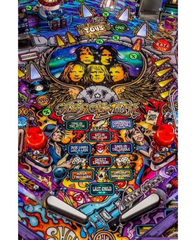 Chacun des neuf titres phares du célèbre groupe de hard-rock américain inscrit sur le plateau représente une mission et de nombreuses combinaisons à effectuer. L’animation son et lumière, ainsi que différents modules du plateau vont s’animer selon la chanson en cours pour mettre en avant tout le sens de ces tubes avec notamment un ascenseur plus vrai que nature ! En outre, il faudra former le mot A-E-R-O-S-M-I-T-H en frappant sur les cibles des lettres du bas du plateau pour obtenir un super bonus. La grande nouveauté de ce flipper : la nouvelle génération d’afficheur Ecran LCD HD. Sur un fond d’animations en bandes dessinées, cela amène une nouvelle ambiance autour du flipper, avec un afficheur toujours plus interactif !