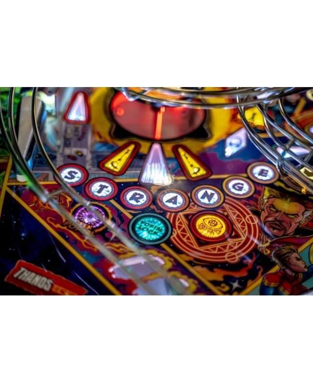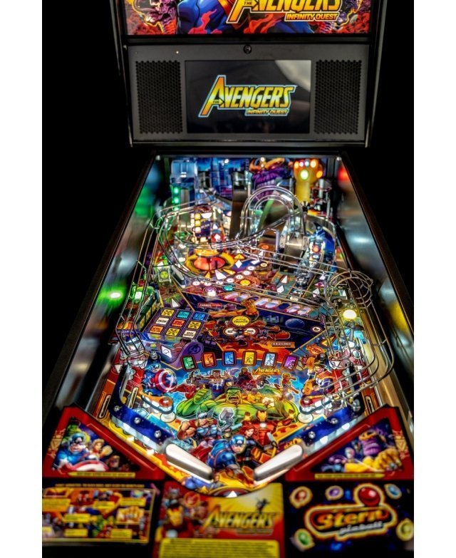 Les modèles Pro, Premium et Limited Edition sont tous dotés d’un disque interactif et rotatif avec détection de vitesse Dr. Strange, qui aide les joueurs à ouvrir des portails et à lancer les quêtes Infinity Gem. Tous les modèles comportent une rampe défiant la gravité, avec une cible gravitationnelle dotée d’une fixation magnétique, permettant de capturer des billes en plein vol lorsque les joueurs déverrouillent le multiball d’Iron Man. En plus des illustrations dessinées à la main, tous les modèles sont dotés d’une grille de bingo d’Avengers, d’une banque de 3 cibles, d’une bille captive Thor, d’une cible tournante Hulk, de rampes métalliques complexes et de 3 raquettes.