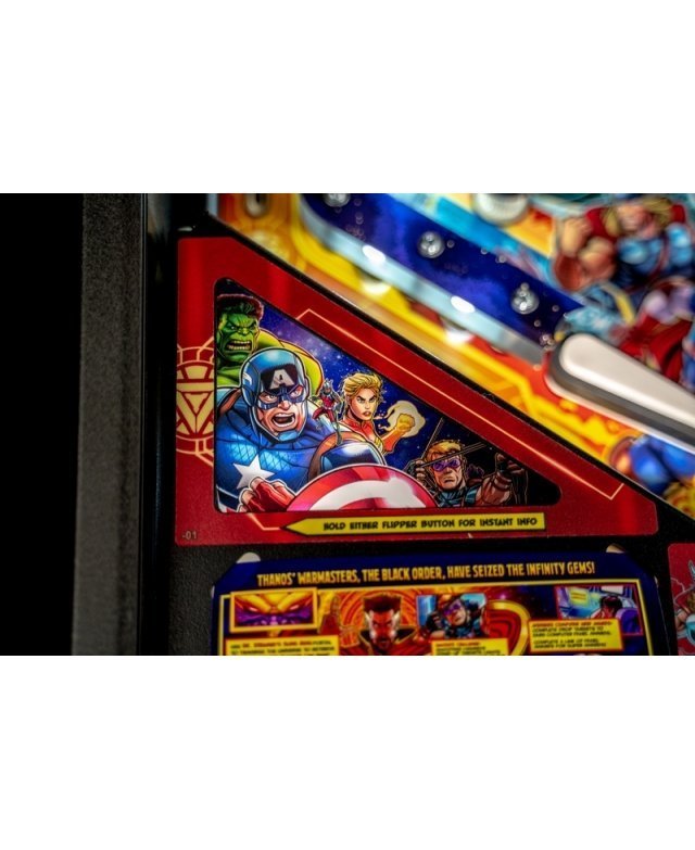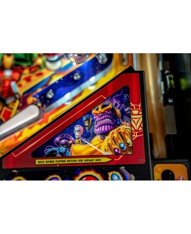 Depuis plus de 50 ans, les Avengers font le bonheur de leurs fans à travers des bandes dessinées, des séries télévisées et des films. Dans ce flipper, les joueurs se transformeront en leurs Super Héros préférés pour affronter Thanos et ses sous-fifres à travers le cosmos. Dans sa quête incessante de pouvoir absolu intergalactique, le joueur a pour mission cruciale de pourchasser et de récupérer les six gemmes de l’infini avant que Thanos et l’Ordre Noir ne mette la main dessus.