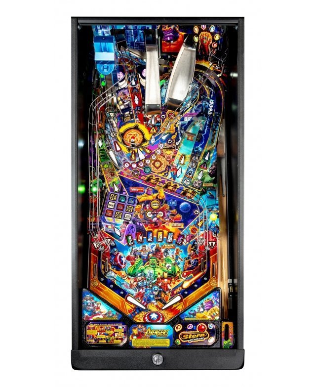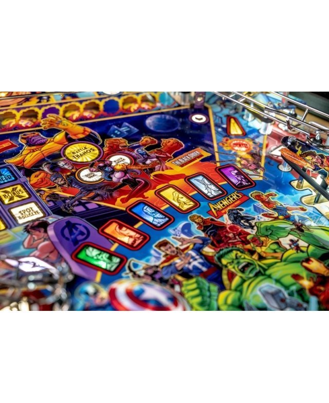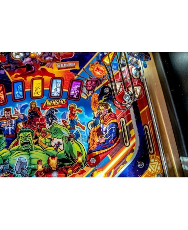 Les modèles Pro, Premium et Limited Edition sont tous dotés d’un disque interactif et rotatif avec détection de vitesse Dr. Strange, qui aide les joueurs à ouvrir des portails et à lancer les quêtes Infinity Gem. Tous les modèles comportent une rampe défiant la gravité, avec une cible gravitationnelle dotée d’une fixation magnétique, permettant de capturer des billes en plein vol lorsque les joueurs déverrouillent le multiball d’Iron Man. En plus des illustrations dessinées à la main, tous les modèles sont dotés d’une grille de bingo d’Avengers, d’une banque de 3 cibles, d’une bille captive Thor, d’une cible tournante Hulk, de rampes métalliques complexes et de 3 raquettes.