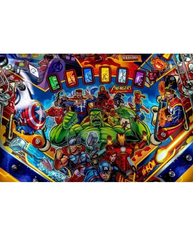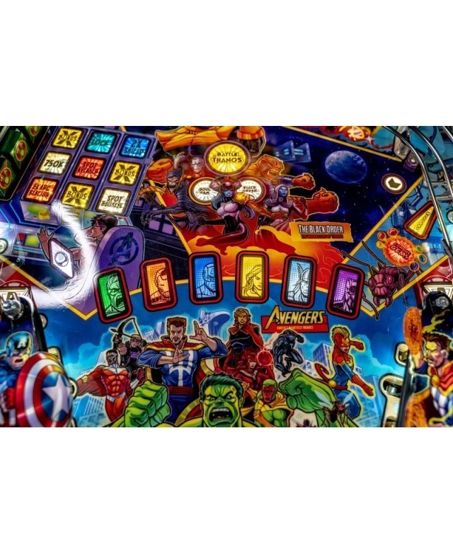 Depuis plus de 50 ans, les Avengers font le bonheur de leurs fans à travers des bandes dessinées, des séries télévisées et des films. Dans ce flipper, les joueurs se transformeront en leurs Super Héros préférés pour affronter Thanos et ses sous-fifres à travers le cosmos. Dans sa quête incessante de pouvoir absolu intergalactique, le joueur a pour mission cruciale de pourchasser et de récupérer les six gemmes de l’infini avant que Thanos et l’Ordre Noir ne mette la main dessus.
