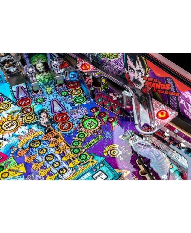 Venez visiter le magnifique manoir d’Elvira : magnifique et … hanté ! La sympathique « Maîtresse des Ténèbres » fait appel à vos qualités pour faire face à une sacrée équipe de fantômes, vampires et autres gargouilles qui ont envahi sa propriété. Voici un flipper sur un thème totalement décalé !