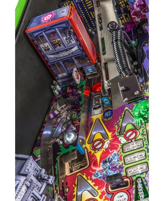 Le flipper Ghostbusters est conçu pour être facile à jouer, mais difficile à maîtriser. Il dispose d’une cible mouvante interactive Slimer et d’une disposition innovante qui intègre des mécanismes traditionnels de flipper avec une rampe unique bidirectionnelle doté d’un inverseur magnétique et d’un compteur de points. En outre, le jeu propose une vision moderne du plateau de flipper avec des cibles transferts de billes, des cibles mouvantes, une cible prisonnière et des jouets décors à l’effigie du film.