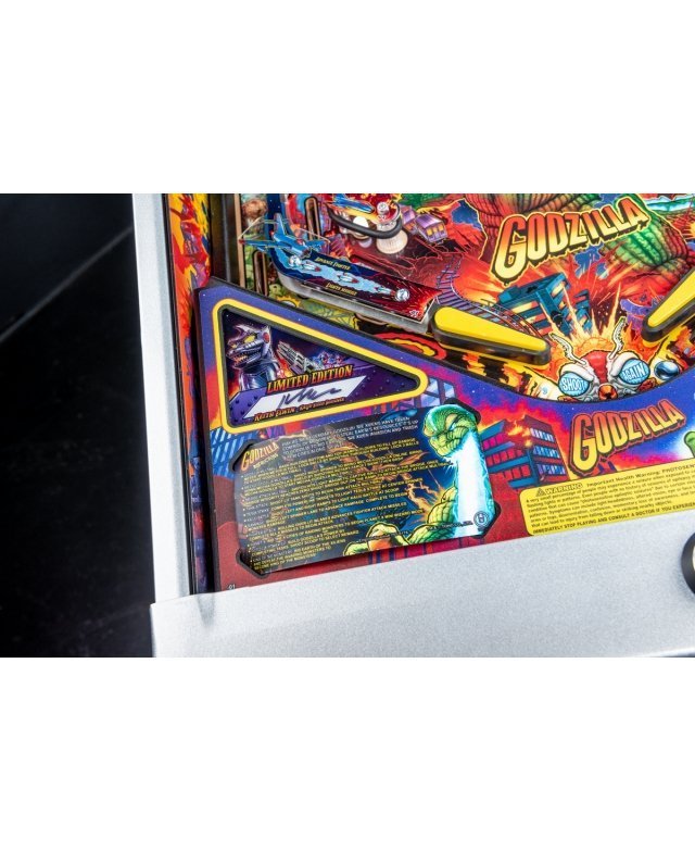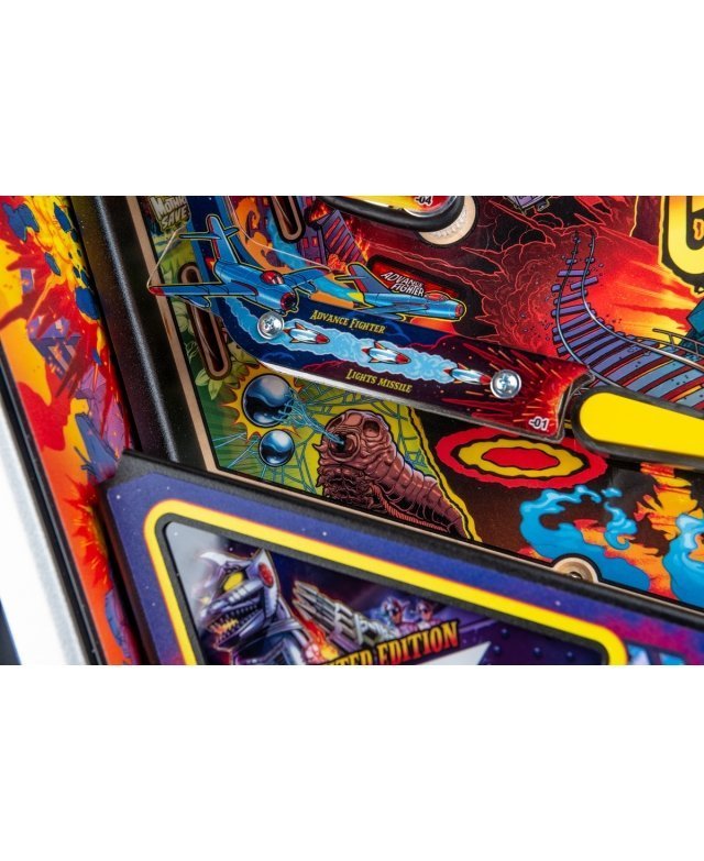 Cette version LE comprend une vitre de fronton exclusive en miroir pleine couleur inspirée de Mechagodzilla, des illustrations de caisse personnalisées et emblématiques, une armature de flipper en peinture en poudre métallisée argentée et brillante, une plaque inférieure autographiée par un designer, des bandes artistiques intérieures exclusives, un système audio amélioré, une vitre anti-reflet pour le flipper, un moteur de secouage, une plaque numérotée séquentiellement et un certificat d’authenticité.