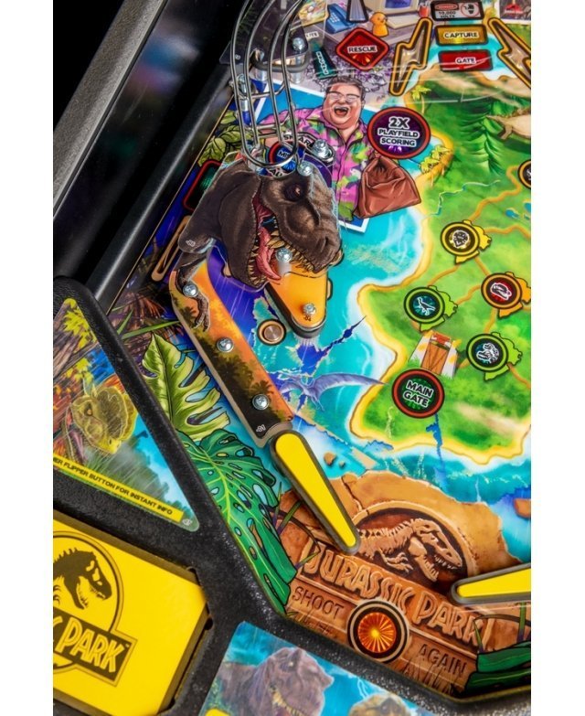 Tout comme le blockbuster, ce flipper Stern Jurassic Park reprend toute l’adrénaline de cet incroyable univers et diffuse des émotions fortes au fur et à mesure de l’avancée du joueur dans le jeu. Au début de la partie, le joueur est transporté sur l’île Nublar, un parc d’attractions où des dinosaures échappés se révoltent ! La mission du joueur est de sauver le personnel du parc et de re-capturer les dinosaures dans une ambiance chaotique déclenchée par un virus informatique créé de toute pièce par le programmeur avide qu’est Dennis Nedry. Cependant, tous les dinosaures ne sont pas aussi effrayant, car les joueurs devront affronter aussi bien des petits Raptors qu’un très impressionnant T. Rex ! Le jeu immerge les joueurs dans ce monde fascinant popularisé par Steven Spielberg, traquant les dinosaures au prix de nombreux rebondissements.