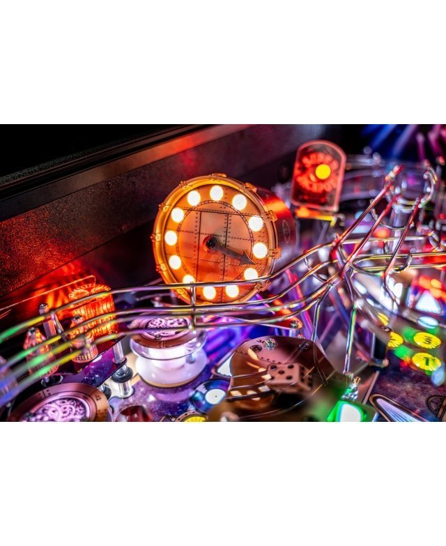 Le flipper Rush Premium et LE comprend une rampe motorisée avec des effets lumineux personnalisés et une horloge Clockwork Angels sculptée sur mesure et inspirée de la grosse caisse de Neil Peart lors de leur tournée Time Machine. Cette horloge motorisée s’illumine, et lorsqu’elle sonne minuit, les joueurs sont transportés dans un moment de folie intitulé Headlong Fight Multiball.