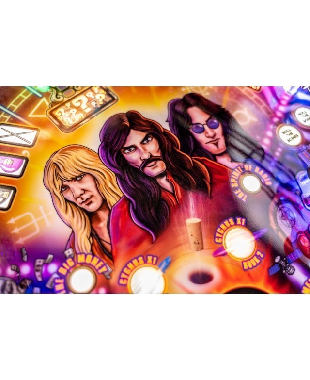 Ce flipper est un véritable concert Rush sous verre comprenant seize chansons emblématiques, accentuées par une animation sonore et lumineuse de haute volée. Les chansons comprennent Headlong Flight, Far Cry, One Little Victory, Working Man, 2112, Tom Sawyer, The Spirit of Radio, Freewill, Cygnus X-1 (Book One : The Voyage et Book Two : Hemispheres), The Big Money, Subdivisions, Limelight, Fly By Night, La Villa Strangiato, Bastille Day et Red Barchetta. Elément central sur ce plateau, vous pourrez voyager dans le temps avec Rush en tirant des boules de flipper dans une Time Machine électromagnétique conçue sur mesure. Les joueurs pourront découvrir les jeux Red Barchetta, Subdivisions et Fly By Night Multiball.