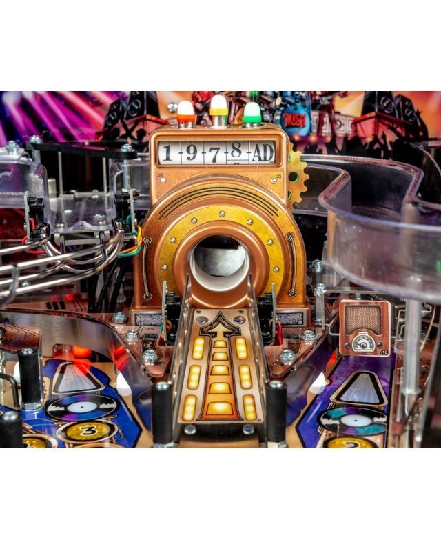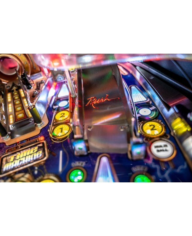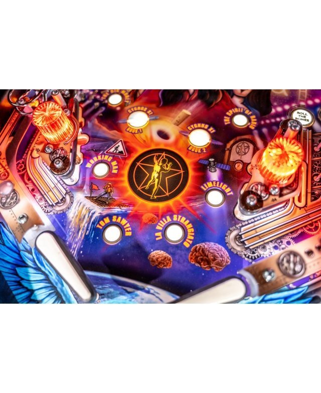 Ce flipper est un véritable concert Rush sous verre comprenant seize chansons emblématiques, accentuées par une animation sonore et lumineuse de haute volée. Les chansons comprennent Headlong Flight, Far Cry, One Little Victory, Working Man, 2112, Tom Sawyer, The Spirit of Radio, Freewill, Cygnus X-1 (Book One : The Voyage et Book Two : Hemispheres), The Big Money, Subdivisions, Limelight, Fly By Night, La Villa Strangiato, Bastille Day et Red Barchetta. Elément central sur ce plateau, vous pourrez voyager dans le temps avec Rush en tirant des boules de flipper dans une Time Machine électromagnétique conçue sur mesure. Les joueurs pourront découvrir les jeux Red Barchetta, Subdivisions et Fly By Night Multiball. C’est dire le prestige de ce groupe !