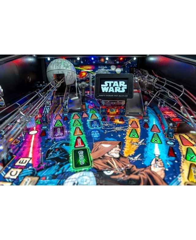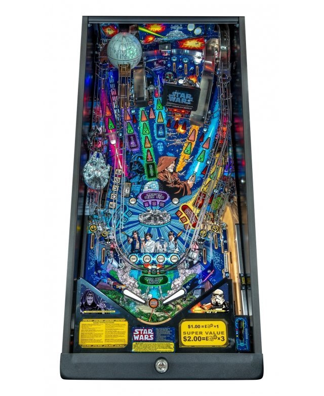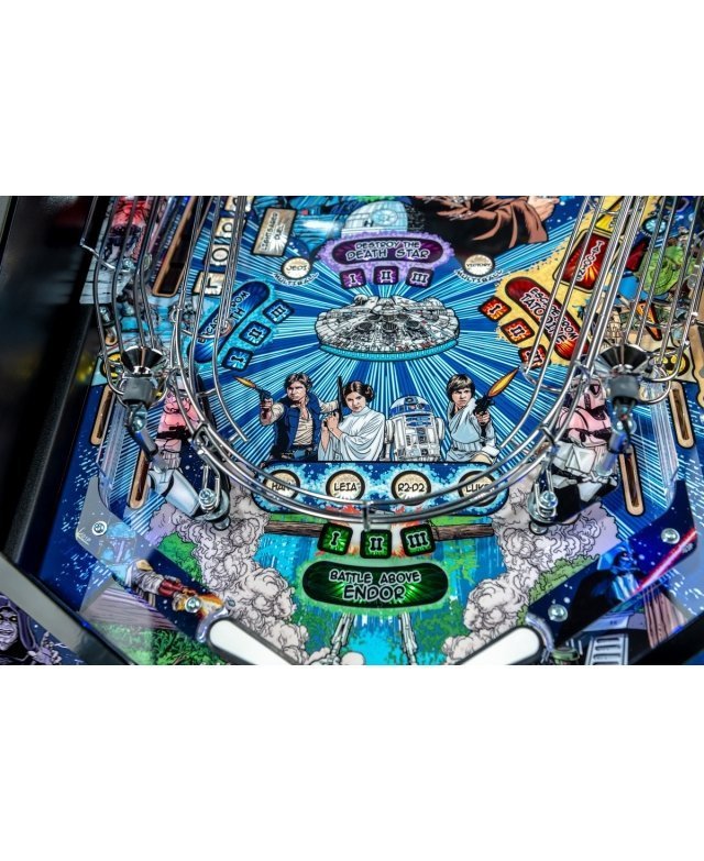 Se basant sur les films de la première trilogie Star Wars, ce flipper très familial plonge le joueur dans les multiples épopées de Luke, Han, Princesse Leia et R2-D2. Sur la version Premium, la rampe hyper-espace métallique permet de vivre toute l’énergie d’un voyage inter-galactique. Que la force soit avec vous !