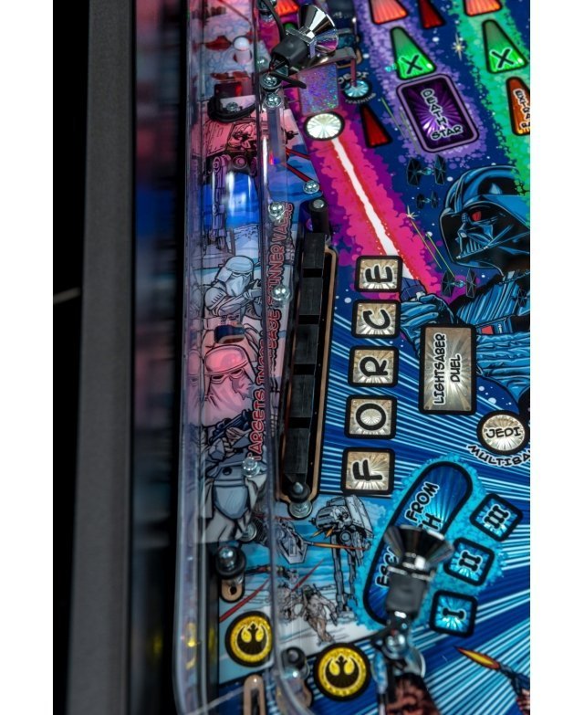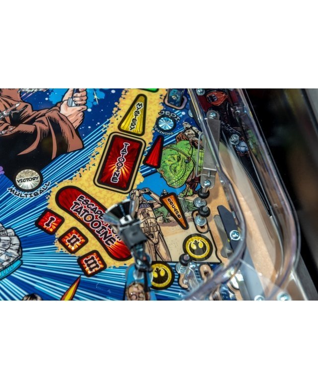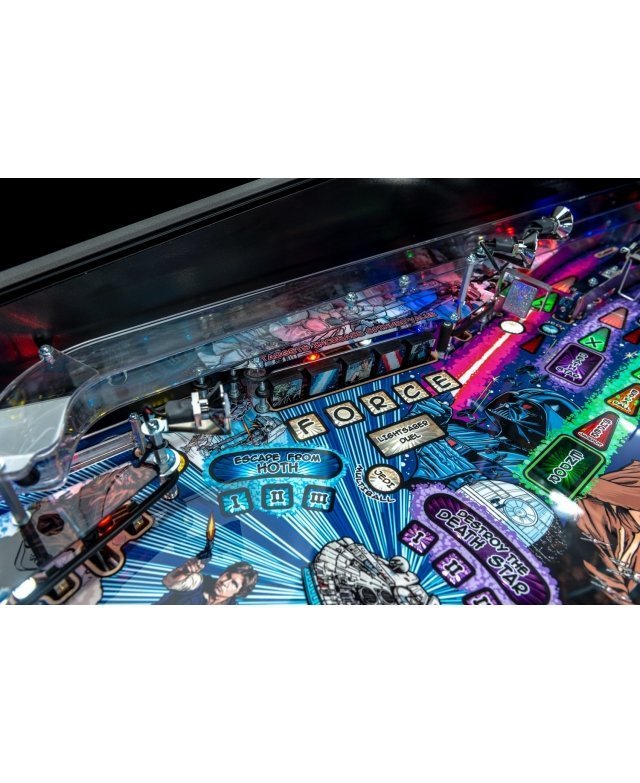 Les flippers Star Wars Comic Art Pro et Star Wars Comic Art Premium de Stern sont dotés de nombreuses fonctionnalités qui offrent une expérience de jeu irrésistible. Le jeu comprend des dialogues et des séquences choisis dans la trilogie originale de Star Wars, des inserts lumineux LED aux couleurs changeantes et un chasseur TIE sculpté. Tous les modèles sont dotés de deux écrans LCD.