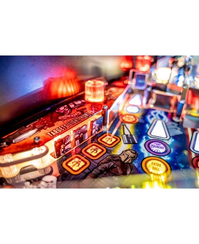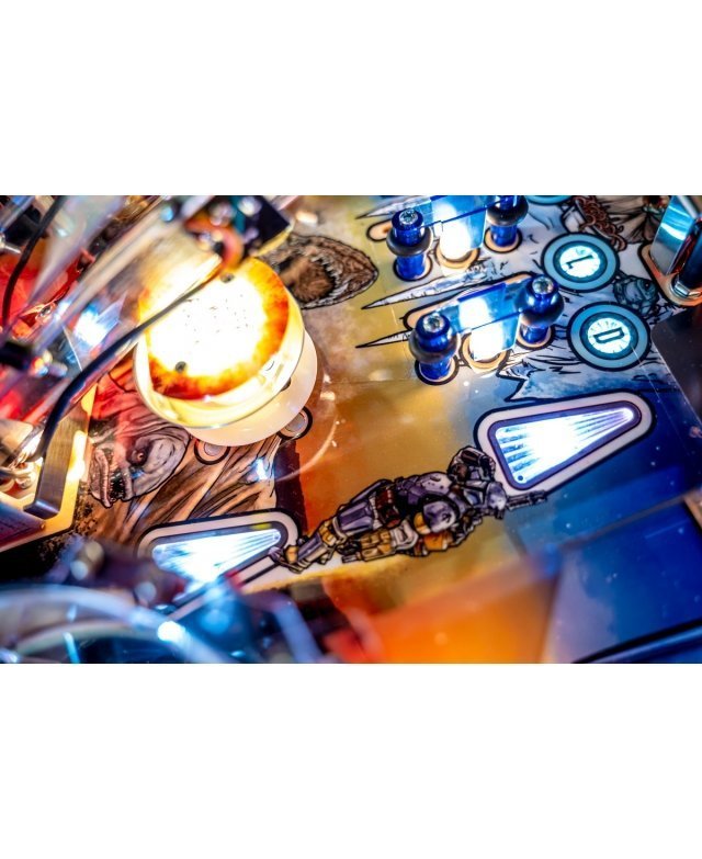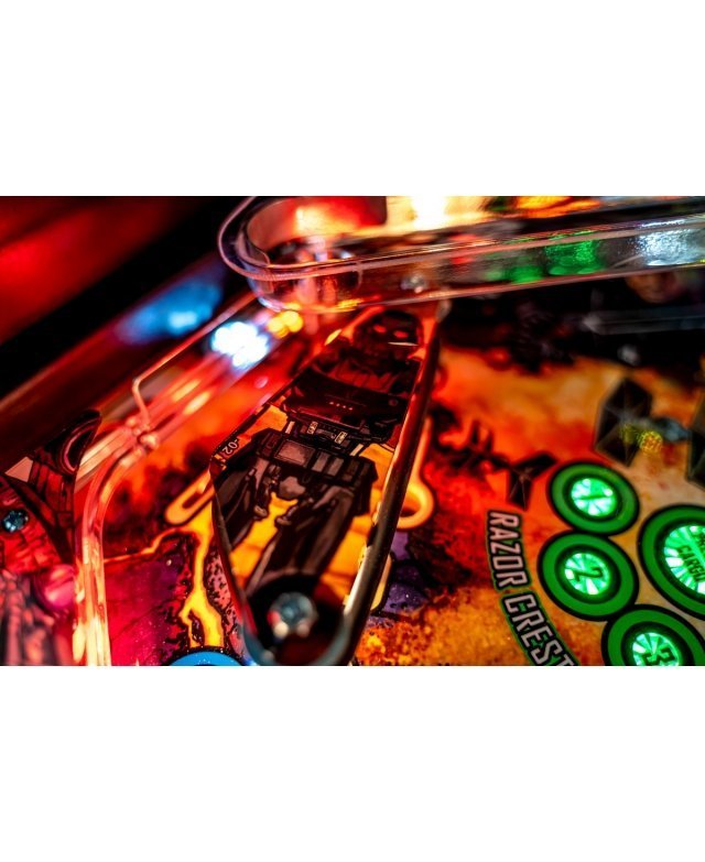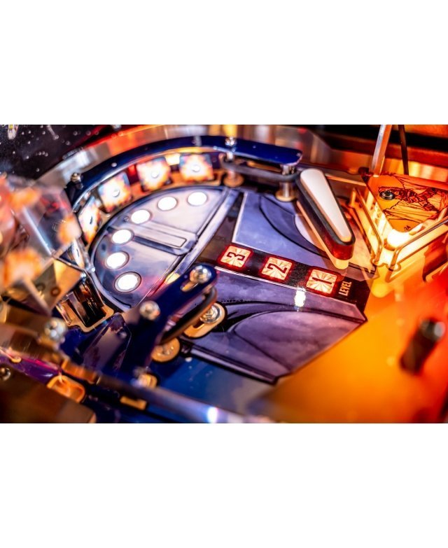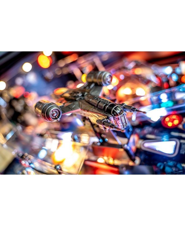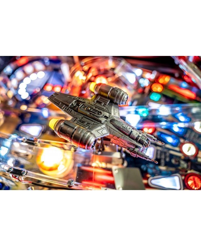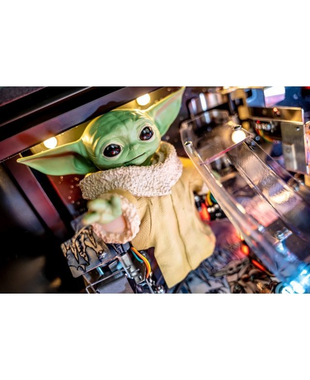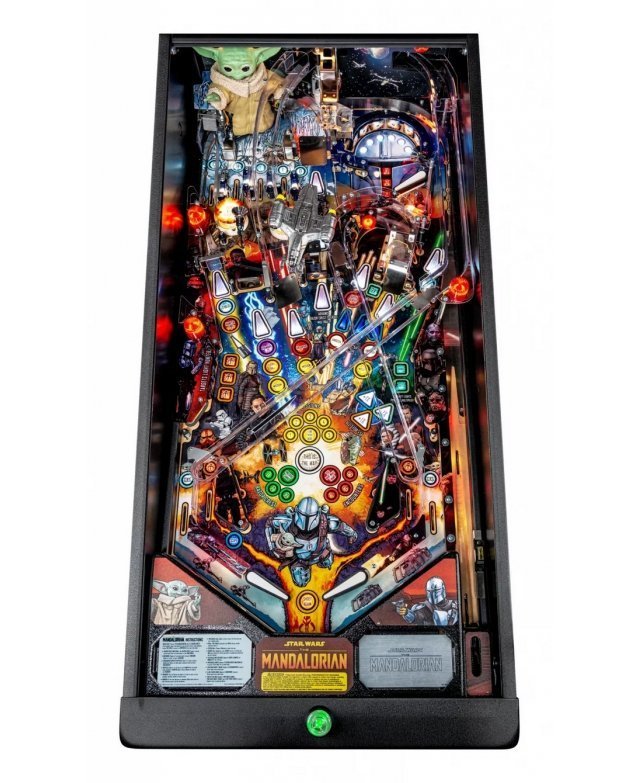 Dès la version Pro, le jeu est très amusant avec ce plateau très dense et particulièrement varié : deux superbes rampes, 1 mini-plateau avec 1 raquette dédiée et 6 cibles fixes, un sculptural baby-yooda, et quelques petits modules inédits ! Une cible unique suspendue à un vaisseau Razor Crest, moulé sur mesure, permet d’accéder à un multi-balls spécifique. Le fait de réussir à toucher la cible donne droit à un tir sur la rampe centrale et ceux sur les trois versions du flippers. Egalement, chaque version du flipper The Mandalorian est animée par la voix de l’acteur Carl Weathers (Greef Karga). Le jeu comprend la bande-originale emblématique de Ludwig Göransson et une superbe illustration dessinée à la main par Randy Martinez, l’un des artistes de bande dessinée les plus populaires du moment.