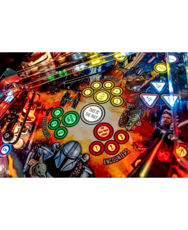 Le flipper The Mandolarian offre un vaste scénario qui permettre aux joueurs de tous niveaux de vivre de sacrées parties de flipper ! Trois grandes familles missions sont à accomplir pour parvenir à la grande mission « This is the way ». Ce flipper possède un large scénario de jeu épousant à merveille les différentes péripéties du Mandalorien au fin fond de l’univers grâce à l’afficheur LCD et de ses nombreuses vidéos dédiées issues de la première et seconde saison de la série.