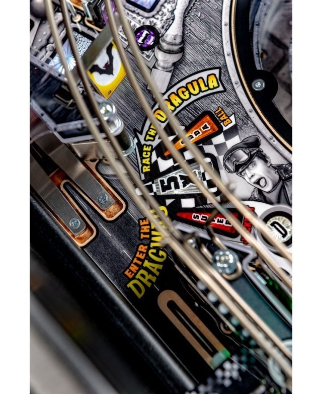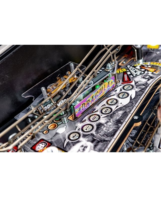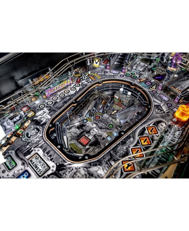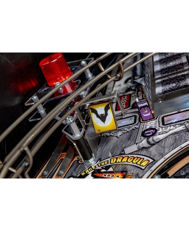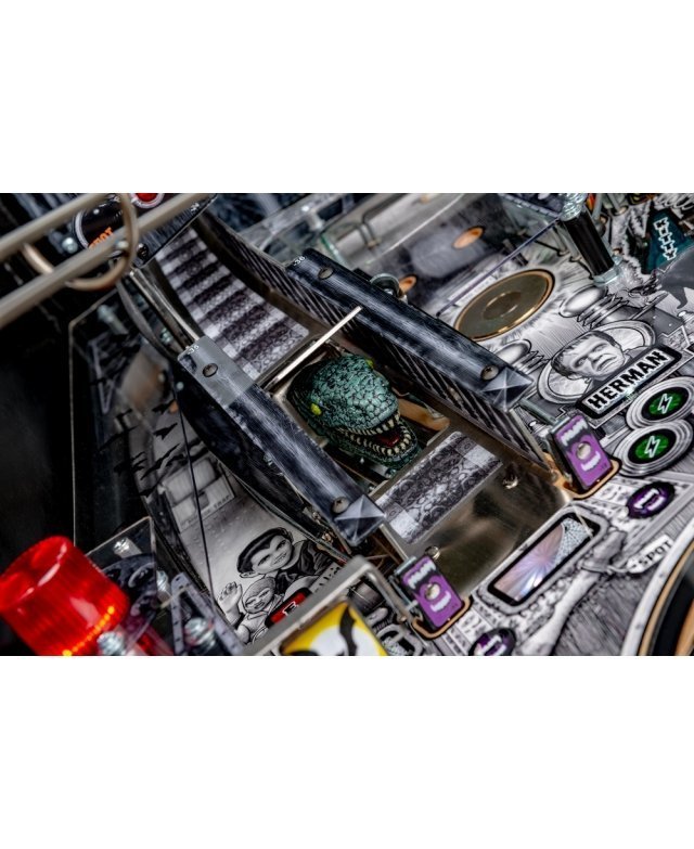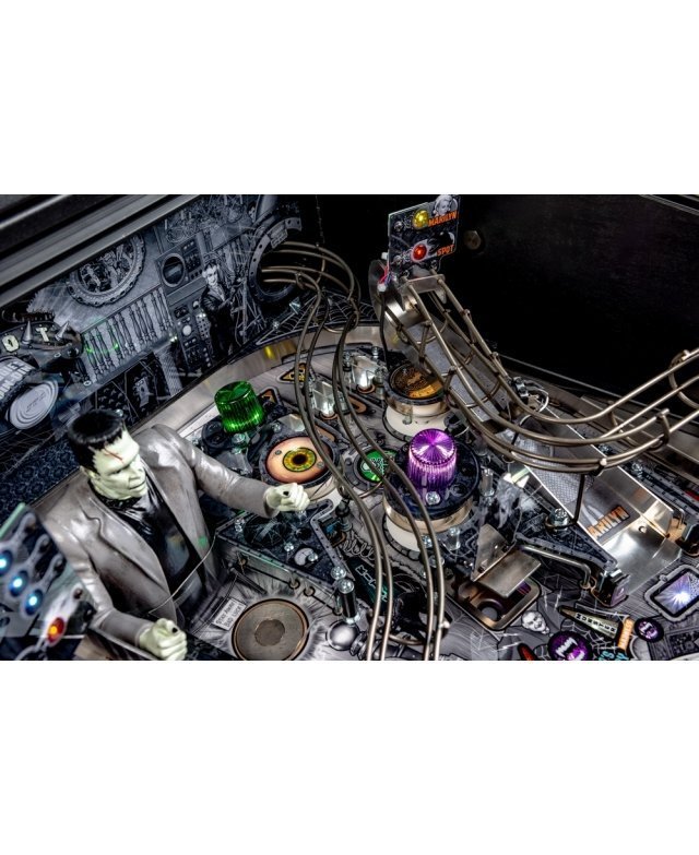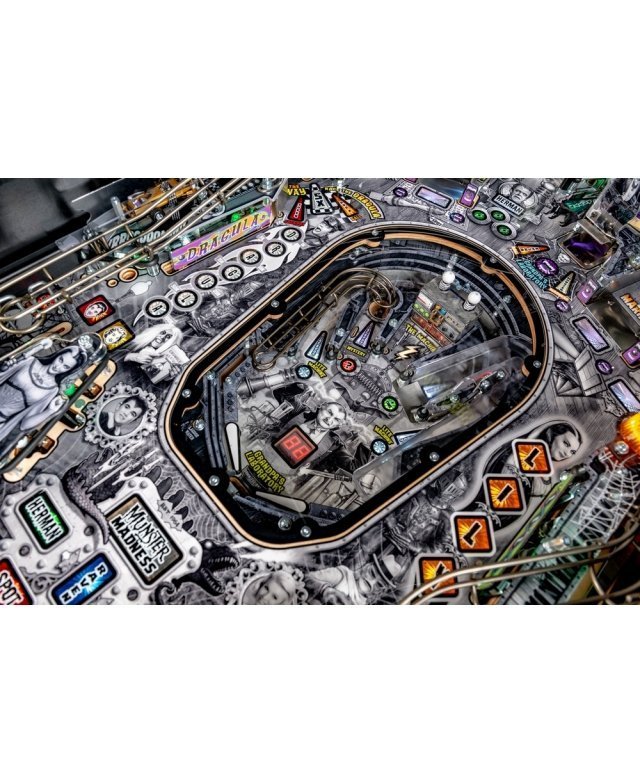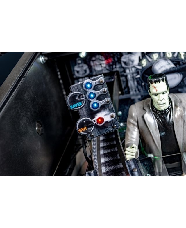 Les modèles The Munsters Pro, Premium et Limited Edition de Stern présentent des dessins à la main remarquables et distinctifs entre chaque version. Chaque jeu présente une superbe figurine Herman sculpté sur mesure avec un puissant aimant à ses pieds, mettant en scène le multi-billes Herman. Il est présent deux grandes rampes métalliques en finition bronze avec notamment la figurine Spot (le chien-dragon de la famille !) cachée sous la rampe de gauche. A l’inverse, la rampe de droite débute par un impressionnant demi-tour vertical. Sur le côté gauche, est situé une voiture de course Drag-u-la sculptée sur mesure près d’un éjecteur de bille qui l’envoie à la vitesse d’un dragster. L’écran HD en guise d’afficheur apporte un vrai plus en terme d’animations avec plein de vidéos originales de la série qui accompagne le joueur dans les missions.