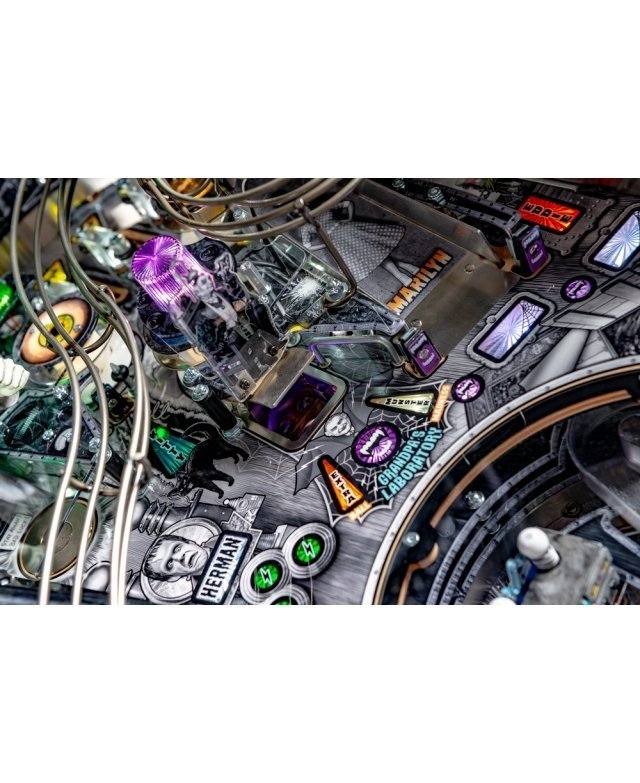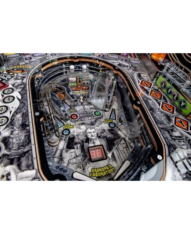 Les modèles Premium et Limited Edition présentent tous deux l’extraordinaire laboratoire de Grandpa, qui est constitué d’un mini-plateau souterrain truffé de fonctionnalités : 2 mini raquettes, 2 rampes métalliques, une cible Grandpa Bash, un afficheur numérique et d’un multi-billes (2 billes) spécial mini-plateau, le tout contrôler par 2 boutons supplémentaires sur la caisse !