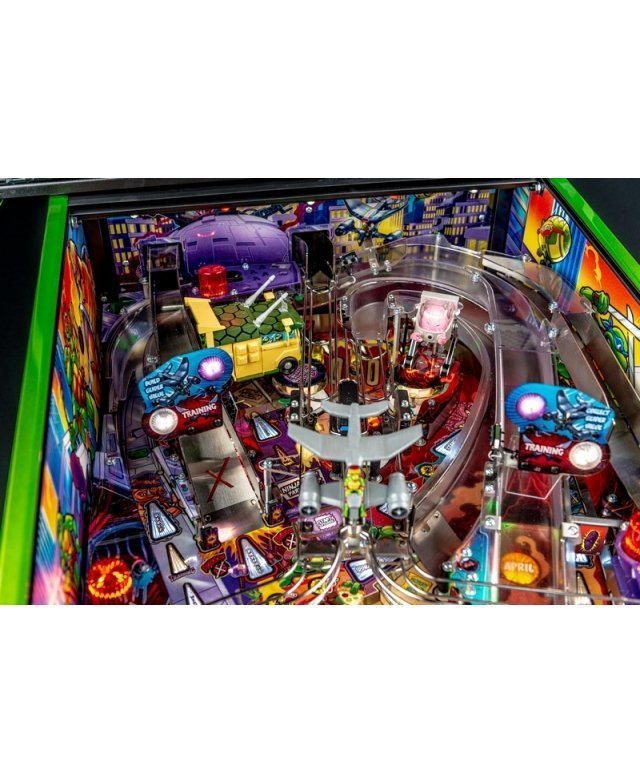 Les modèles Pro, Premium et Limited Edition présentent tous des dessins à la main distincts, ainsi qu’un disque à pizza magnétique tournant à grande vitesse, capable de contenir et de lancer 3 billes pendant le chaos multi-billes de la pizza. Le thème musical original de 1987 complète l’action avec des scènes et des événements vidéo personnalisés créés exclusivement pour ce flipper. Tous les modèles comprennent 3 raquettes, 3 rampes à grande vitesse et une zone cachée de verrouillage des billes d’entraînement des ninjas.