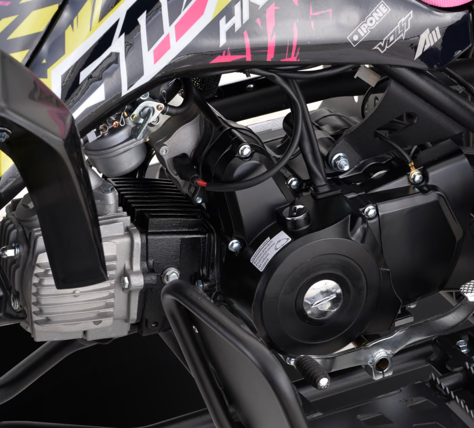 Le quad 125cc Small Mx HRX est équipé du tout nouveau cadre périmétrique dernière génération, résultat d’une collaboration avec la célèbre marque Apollo, qui lui confère un confort et une grande stabilité.